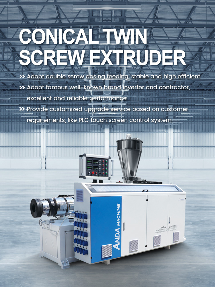 Esas olarak konik ikiz vidalı ekstrüder, kalıp, vakum kalibrasyon tankı, makine, kesme makinesi, istifleyici, çan makinesi ile oluşturulur.