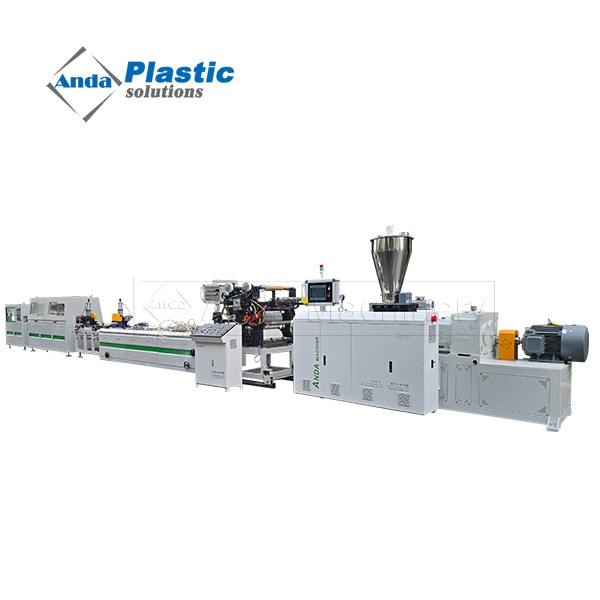 WPC duvar paneli yapım makinesi çeşitli WPC panelleri yapmak için kullanılır. Esas olarak konik ikiz vidalı ekstrüder, vakum kalibrasyon tablosu, makineli makine, kesme makinesi ve istifleyici ile oluşturulur.